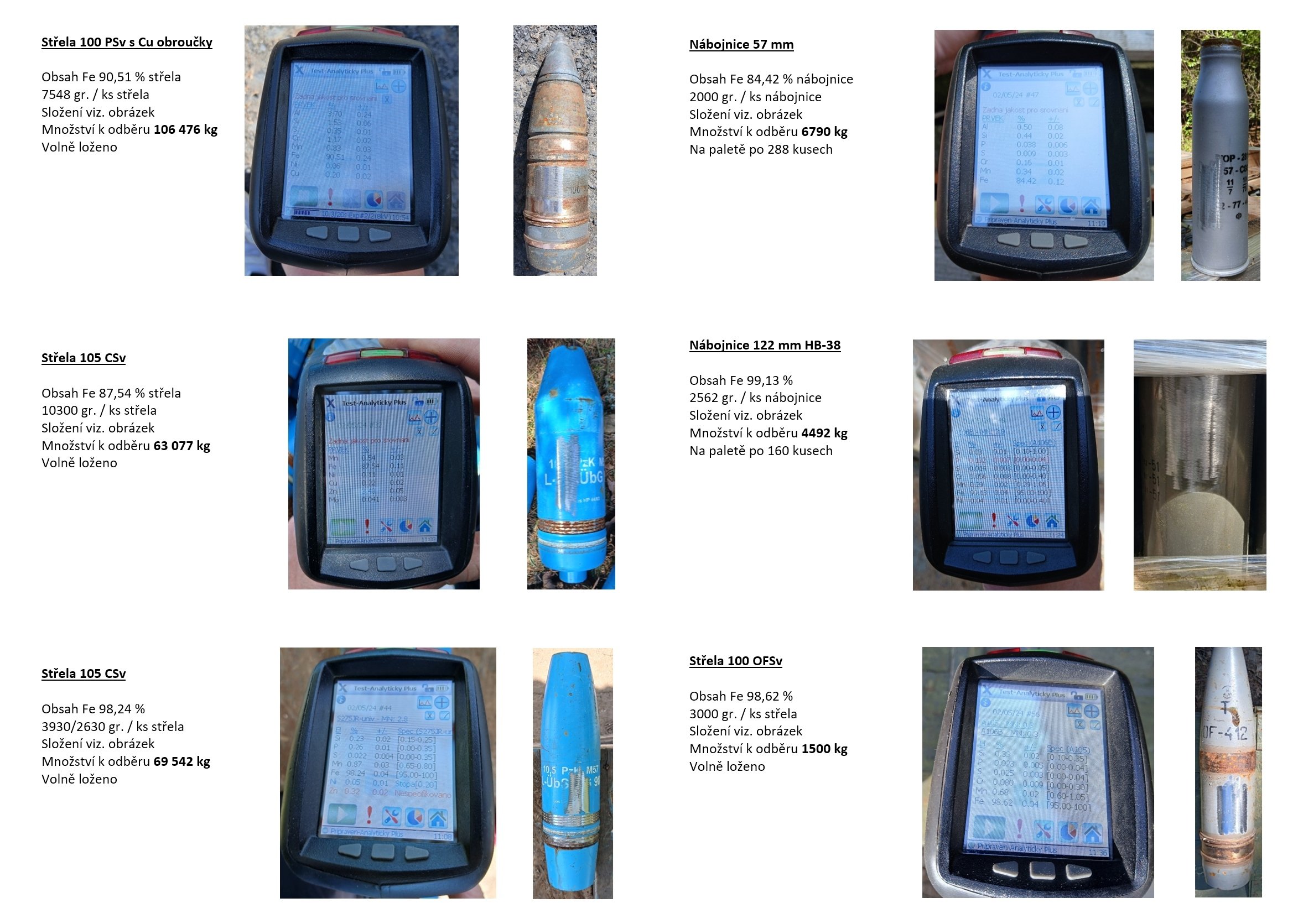 Nabízíme cca 250 tun železného šrotu v podobě prázdných nábojnic a střel. Protokol o nevýbušnosti je samozřejmostí. Nakládku a odvoz si zájemce musí realizovat rukou na kovošrot sám. Materiál se nachází 30 km severně od Liberce. V případě zájmu pošlete nabídku, děkuji.